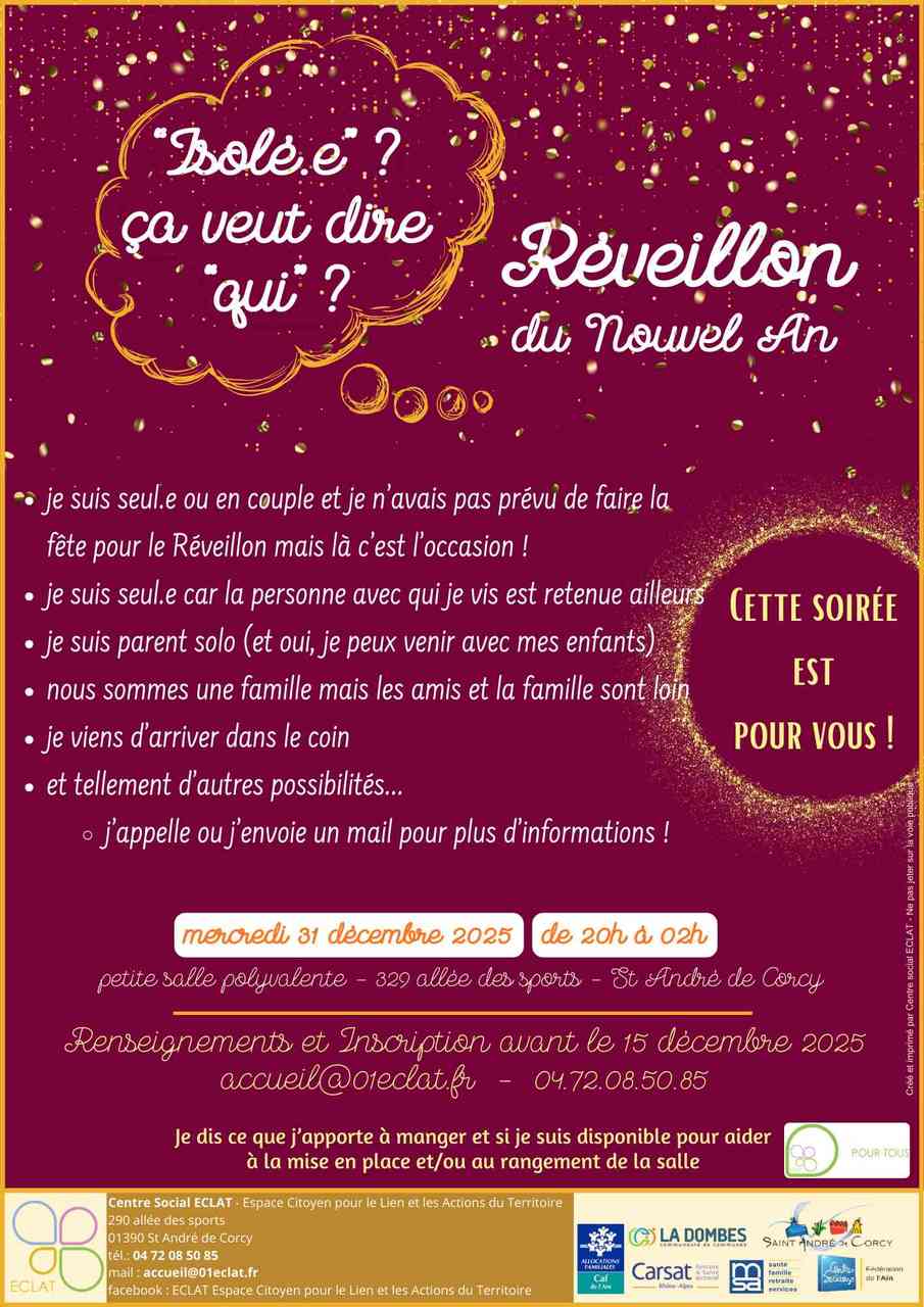 Réveillon du nouvel an Repas partagé – musique mercredi 31 décembre 2025 à partir de 20h00